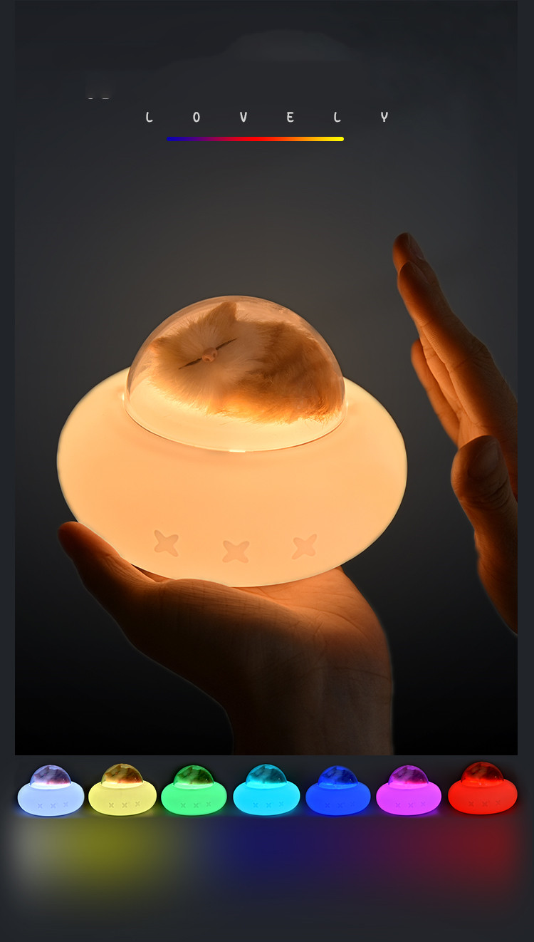 Pet spaceship cat silicone light soft rechargeable dog night light bedroom bedside light