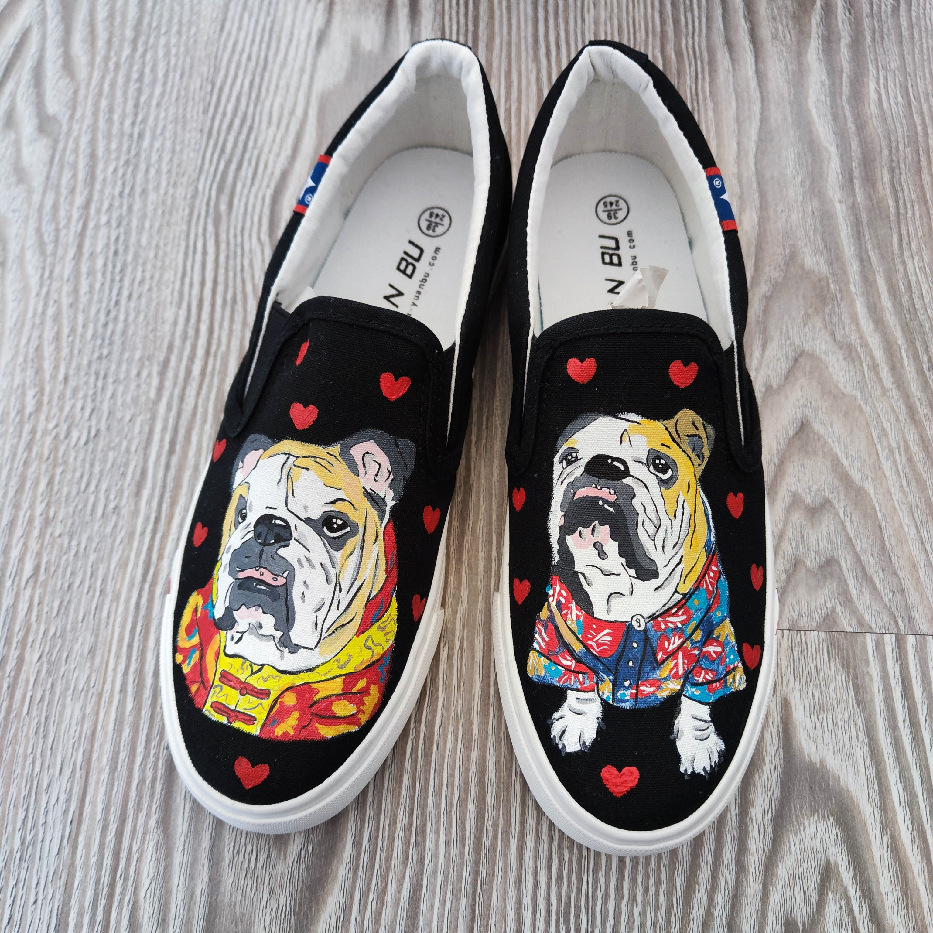 Pet hand drawn shoes graffiti casual cartoon low cut strapless canvas shoes