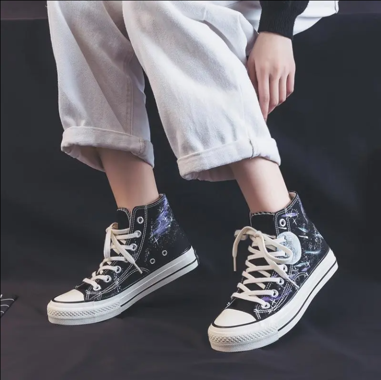 Universe galaxy moon hand painted shoes