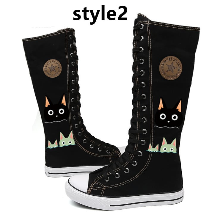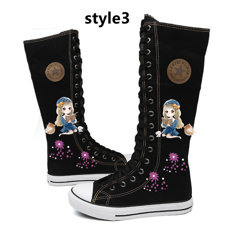 Korean version of the zipper high top hand-painted graffiti canvas shoes cartoon anime high tube couple boots