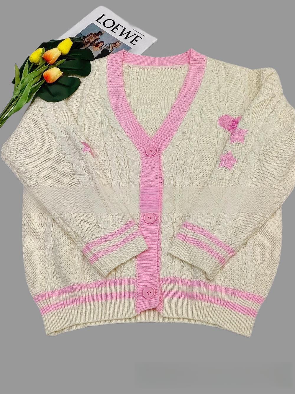 New retro contrast color cute and sweet strawberry embroidery sweater