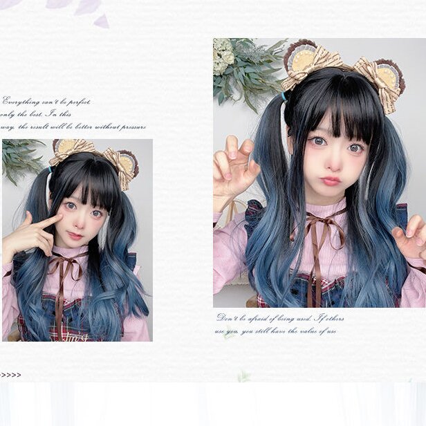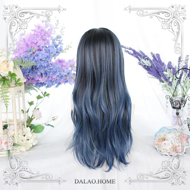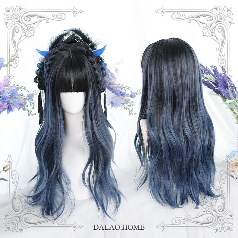 Original blue gradient cos long curly hair wig