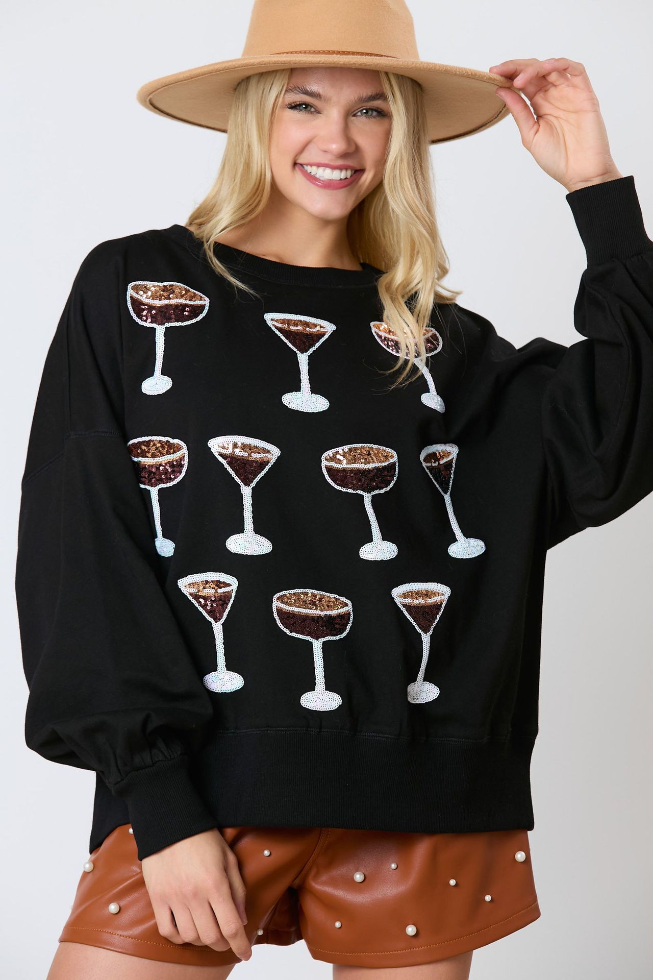 Multiple wine glass sequins loose casual sweatshirt