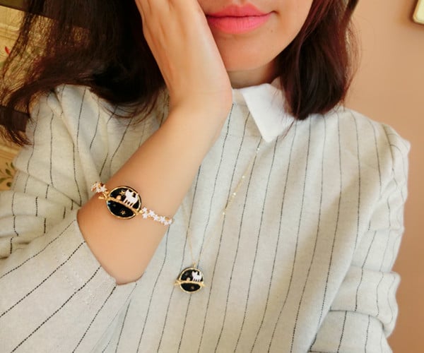 Harajuku planet kitty necklace bracelet