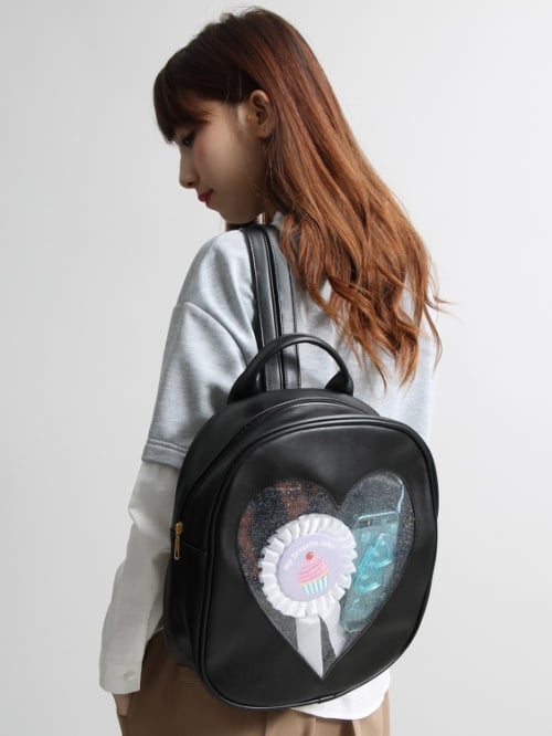Harajuku Transparent Heart Glitter Pastel Backpack