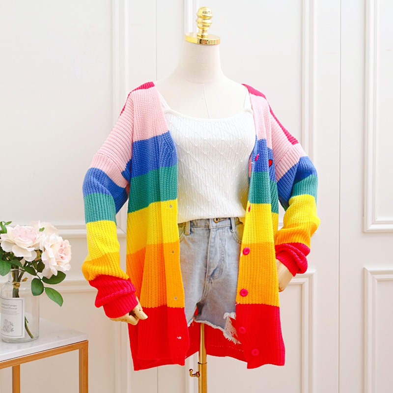 Harajuku Sweet New Rainbow Cardigan Mother Daughter Family Pack