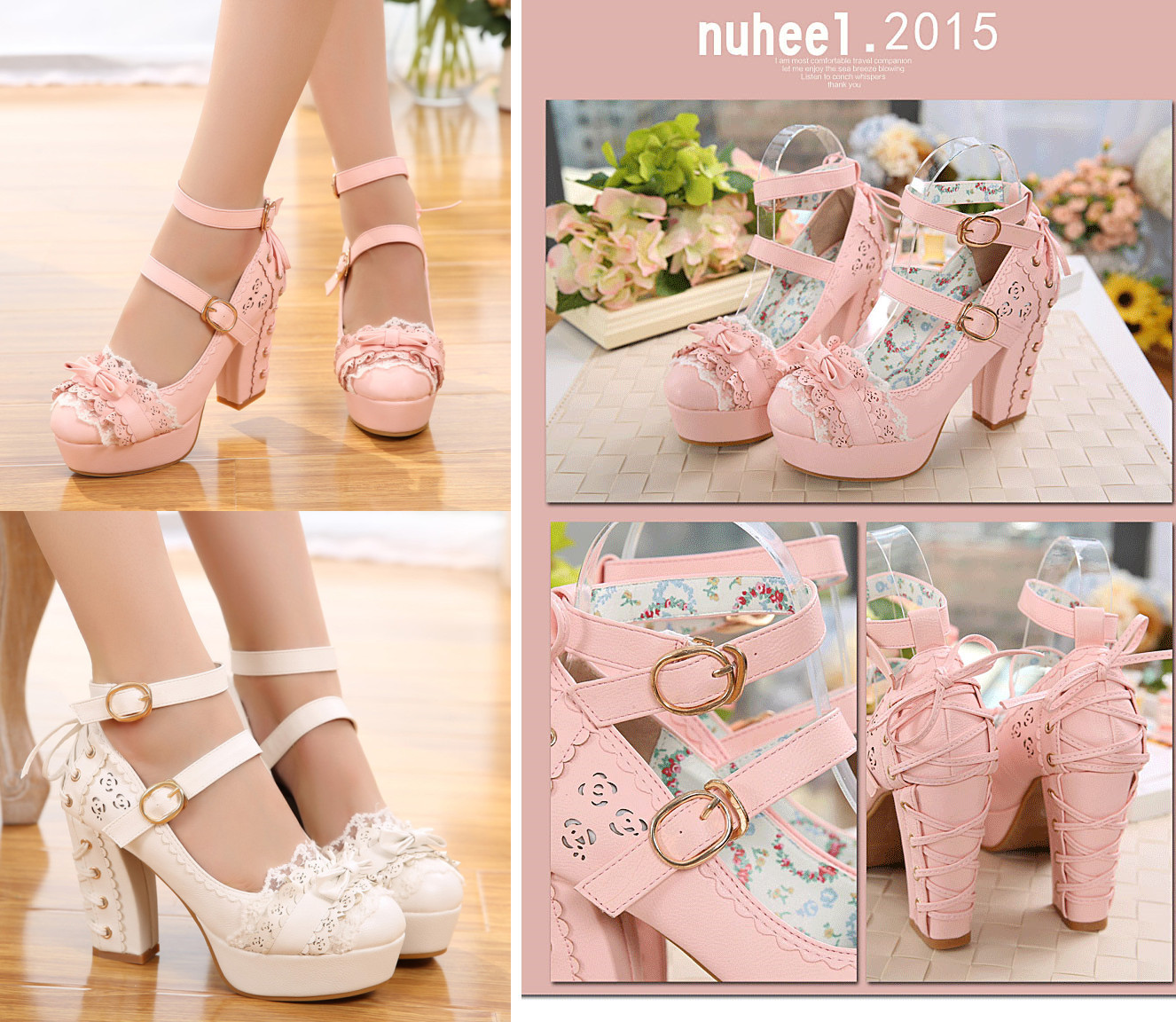 Sweet and lovely lace bow high heels