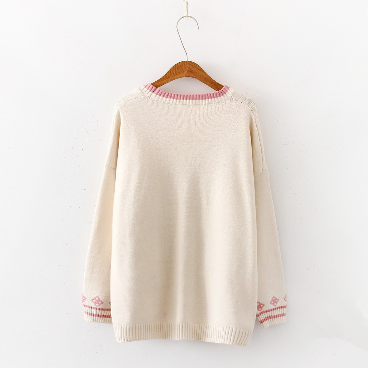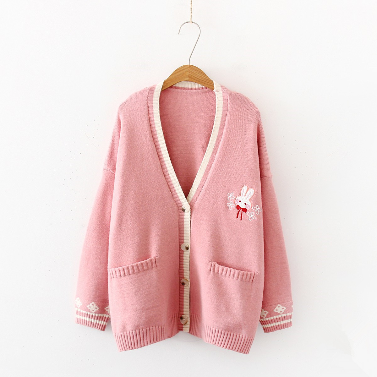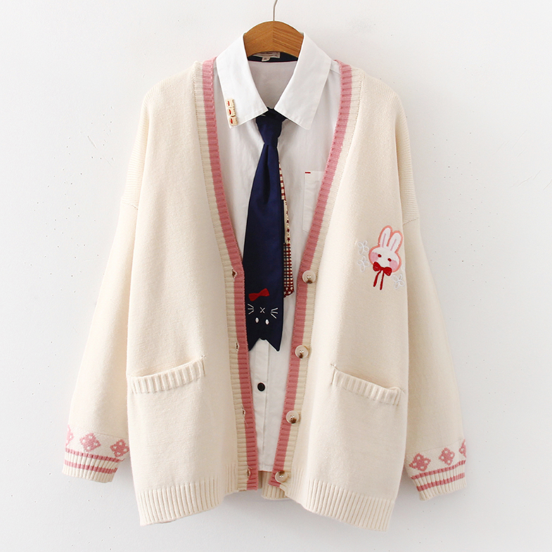 Cartoon Embroidered Bunny Loose Knit Cardigan Sweater