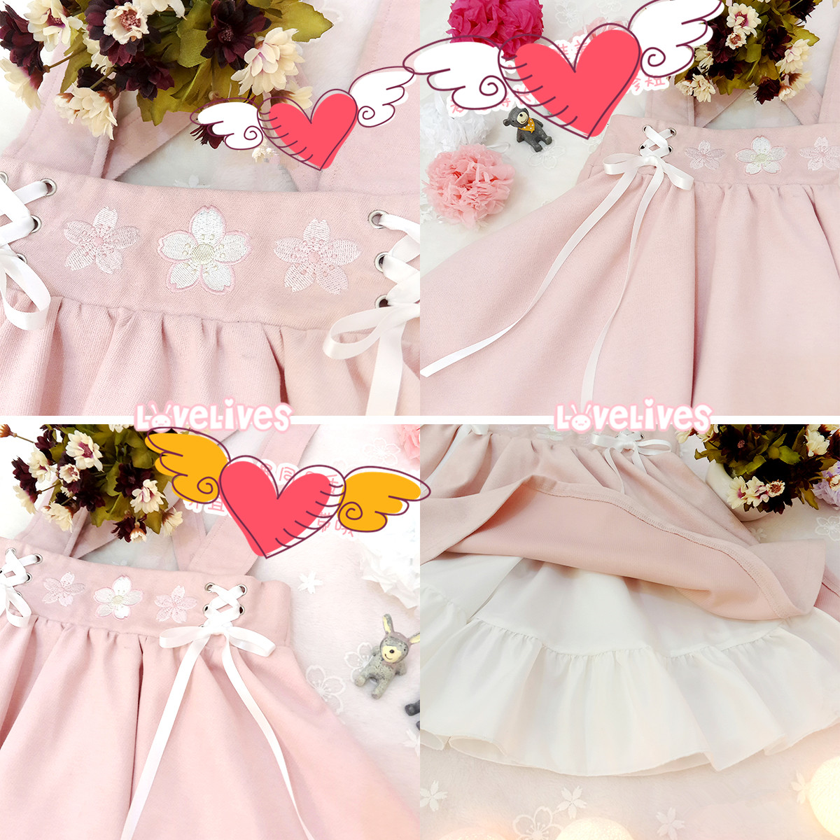 Sakura embroidery strap dress Mori girl bow tie skirt skirt