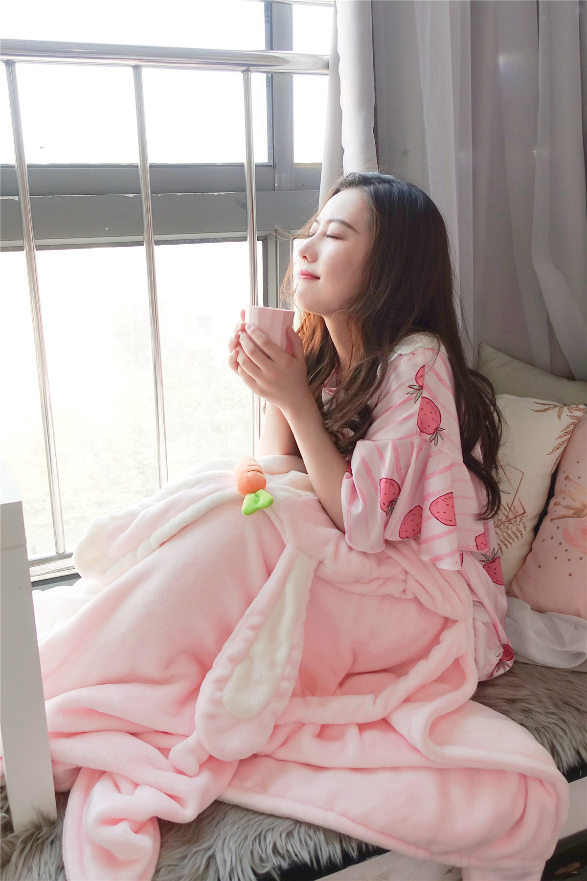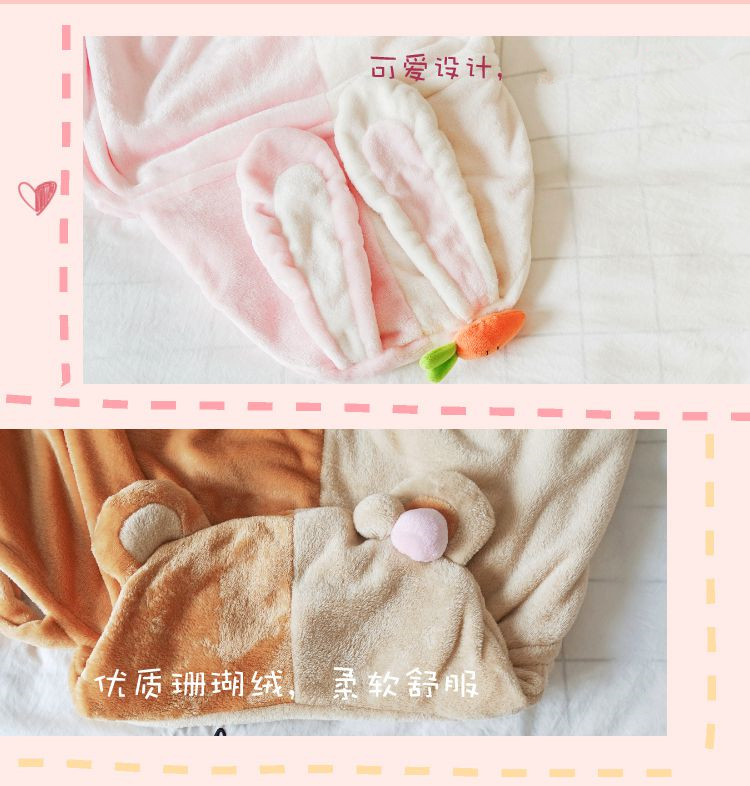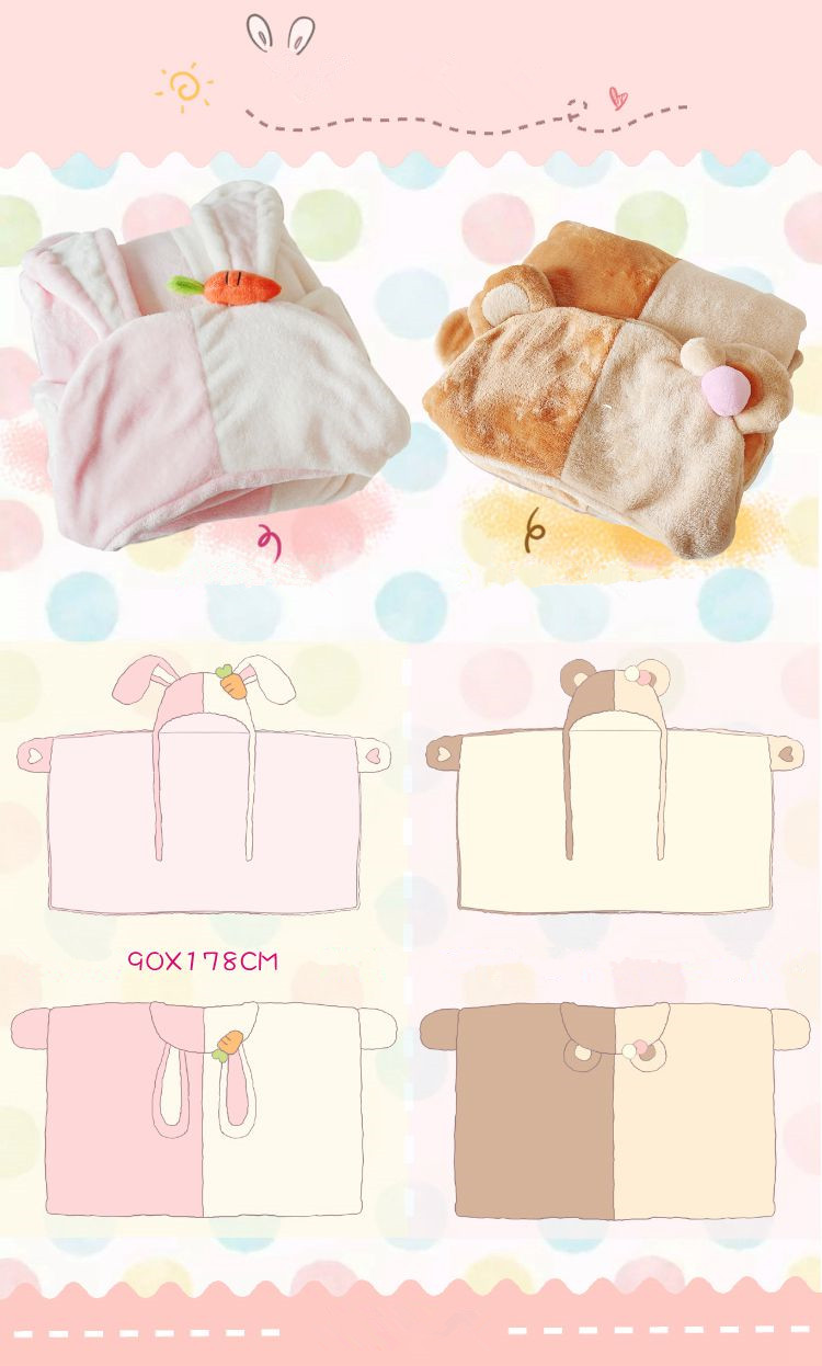 Cute carrot rabbit home cloak lazy blanket lunch break shawl cloak spring and autumn contrast color bear student cartoon blanket