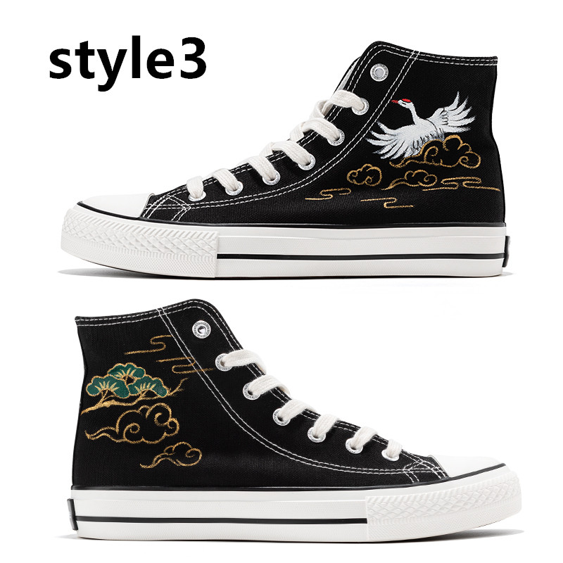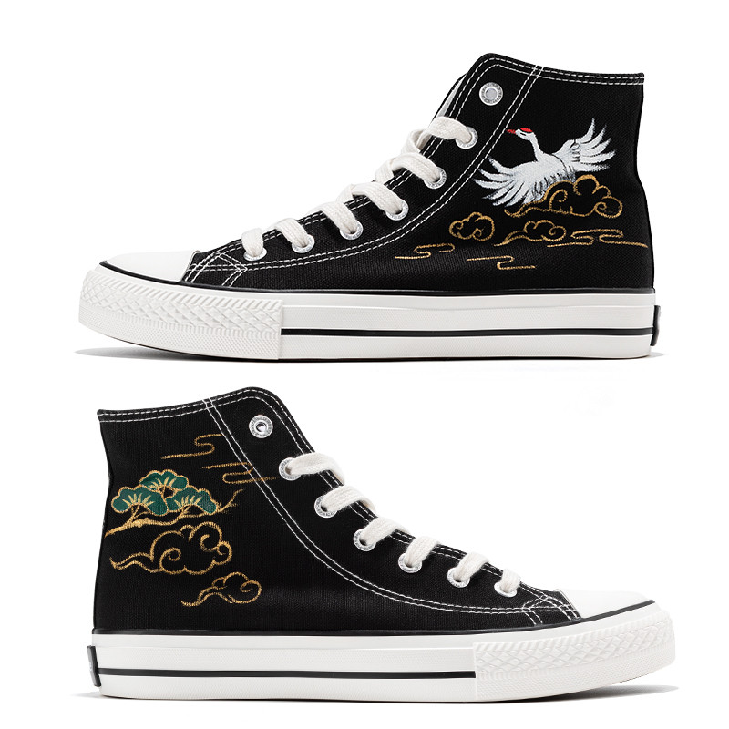 Retro crane waves sunrise casual couple shoes hand-painted shoes