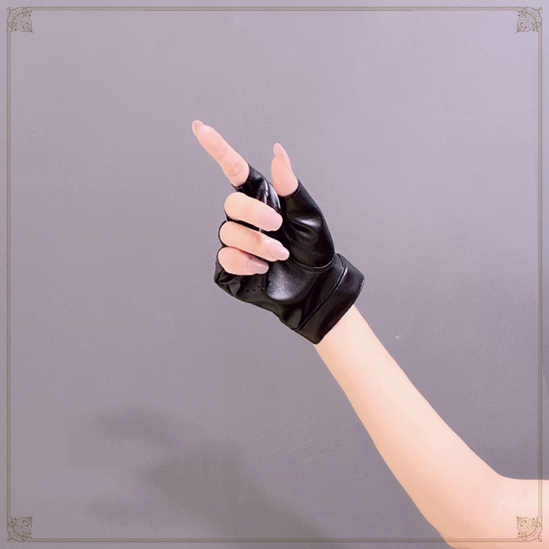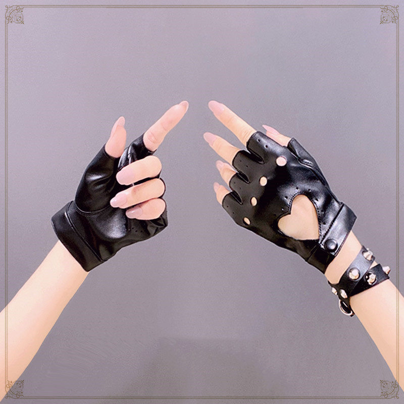 Harajuku Diablo Punk Girl Jk Riding Rock Jumping Di Hollow Leather Hand Sleeve Half Finger Gloves