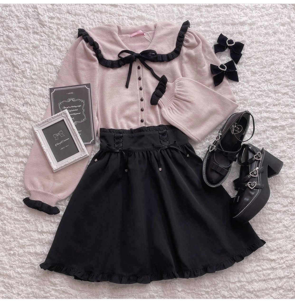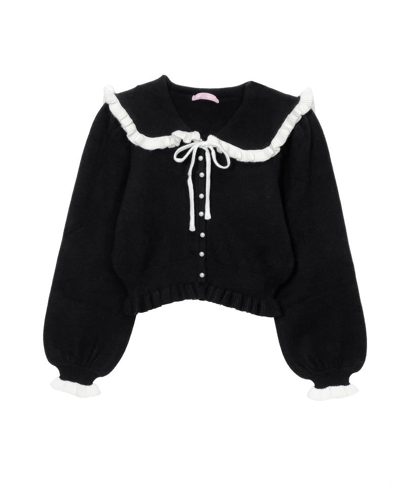 Sweet and cute bow fungus edge doll collar knitted cardigan