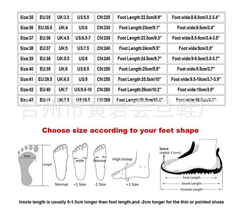 Sizes: 35, 36, 37, 38, 39, 40, 41, 42, 43,