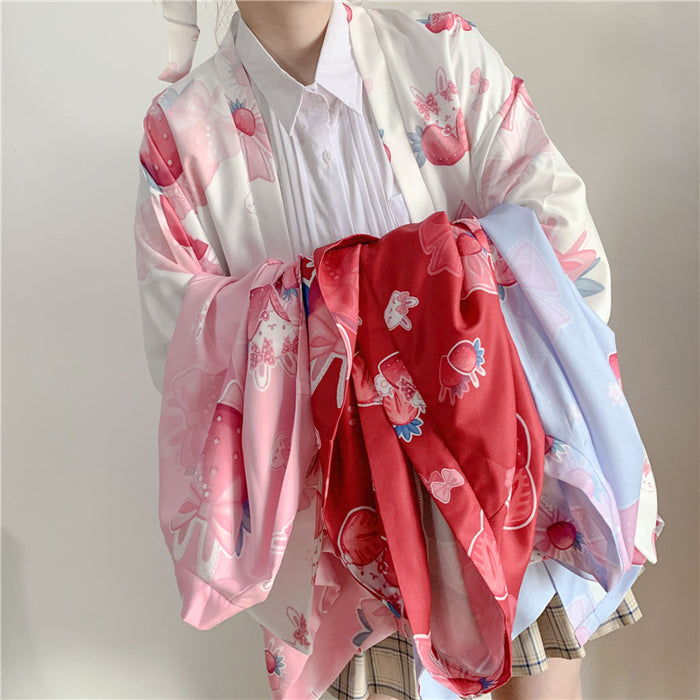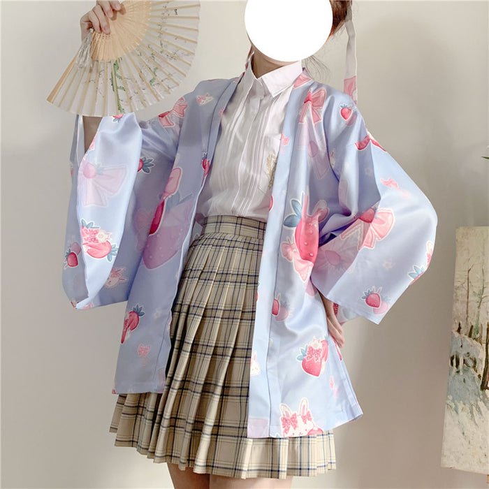 Peach Blossom Praying Rabbit Feather Woven Jacket (with Belt)