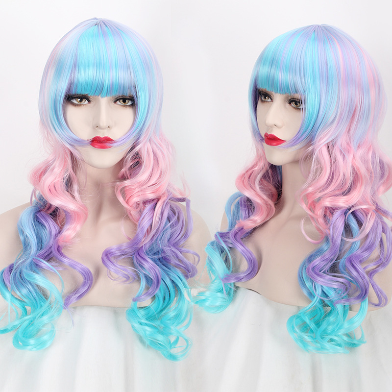 Harajuku COS long curly hair Qi Liu Hai rainbow cosplay wig