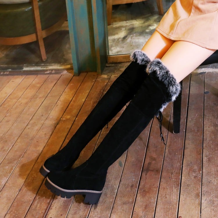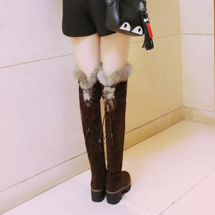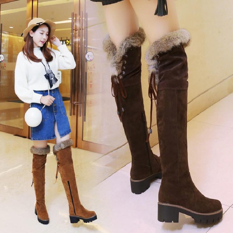 Rabbit fur boots plus fleece thick snow boots over the knee high boots