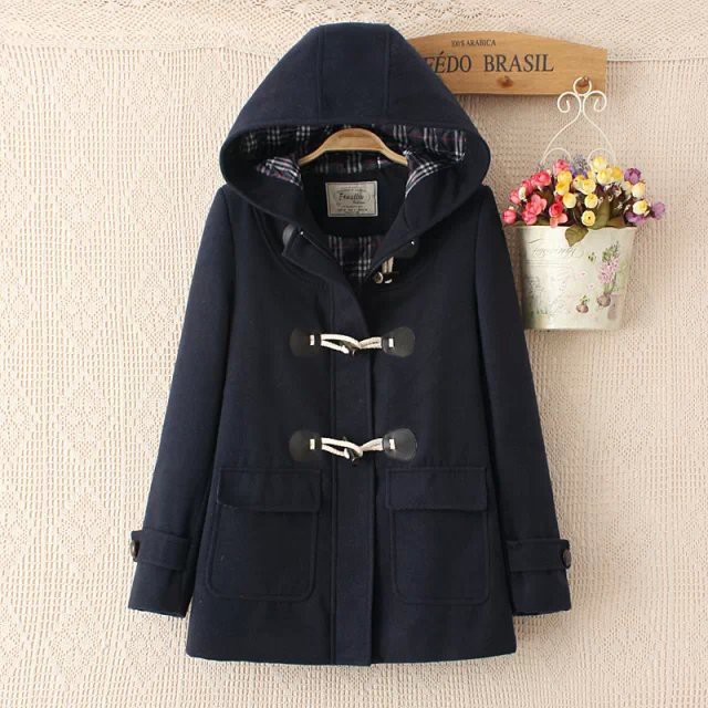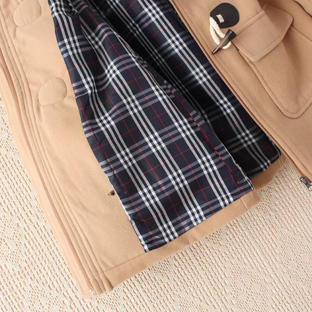 Korean style casual horn button mid-length woolen coat