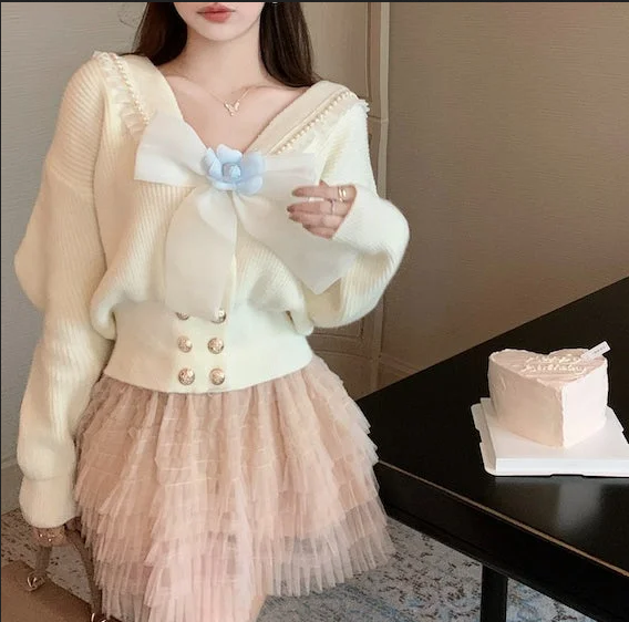 Big Bow Lady Sweater Cardigan