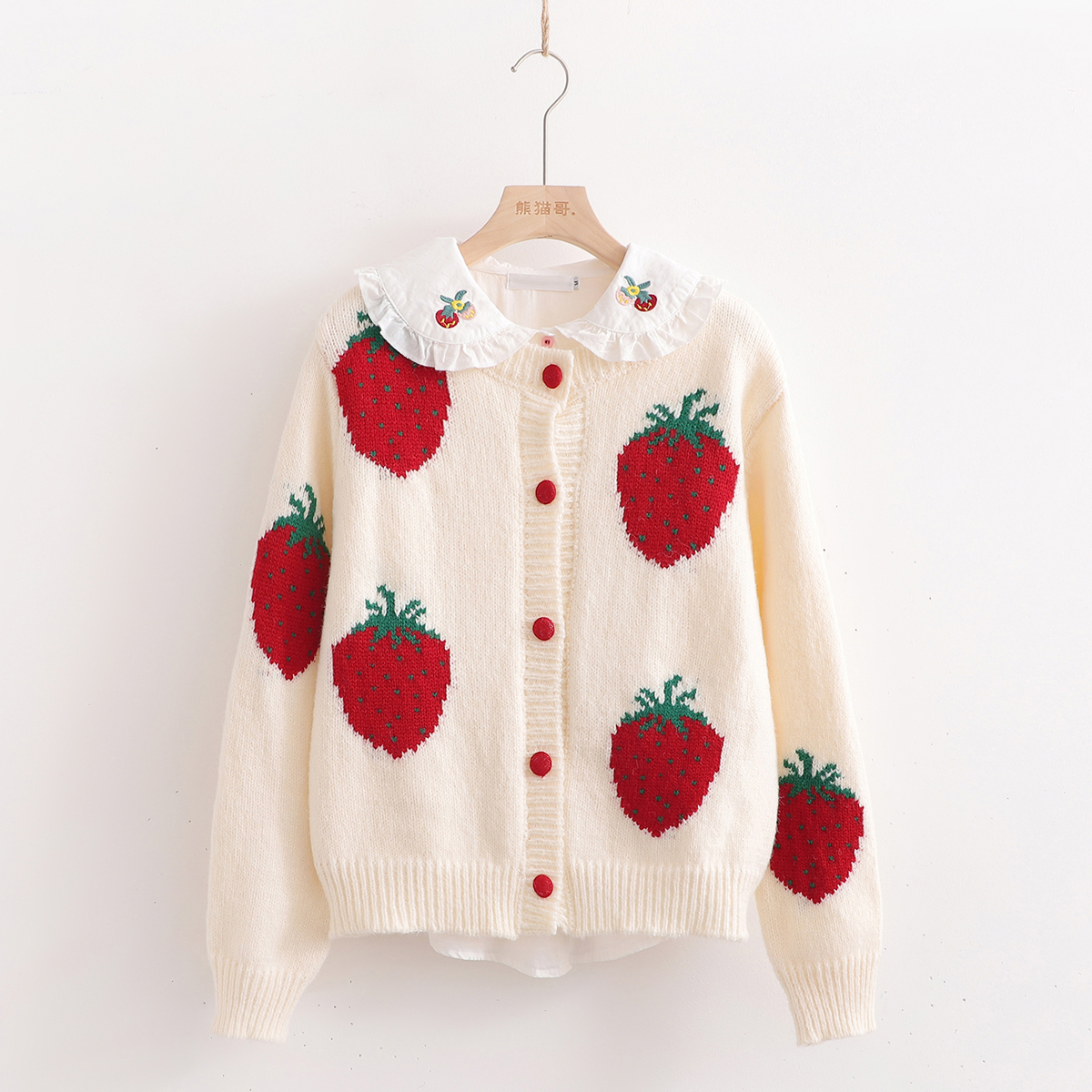 New retro contrast color cute and sweet strawberry embroidery sweater