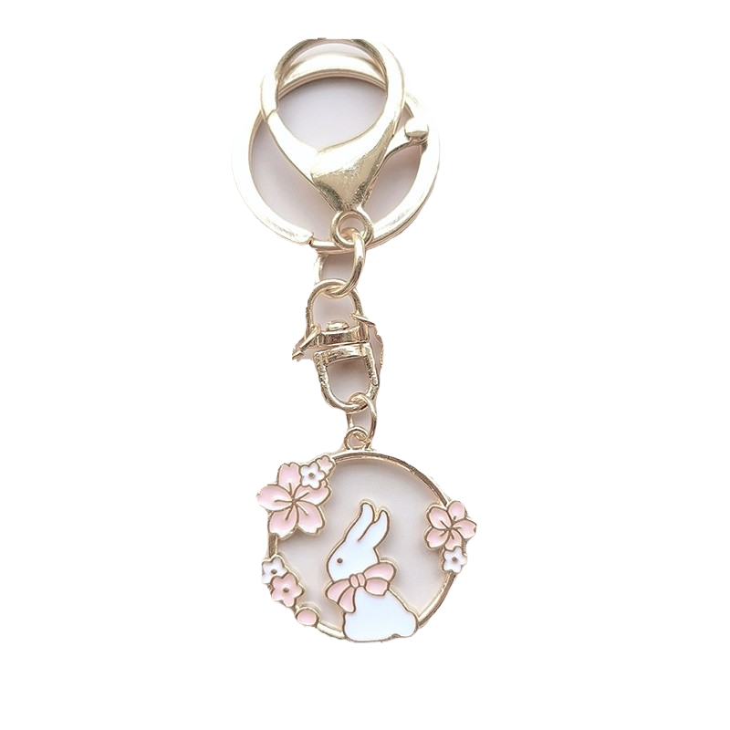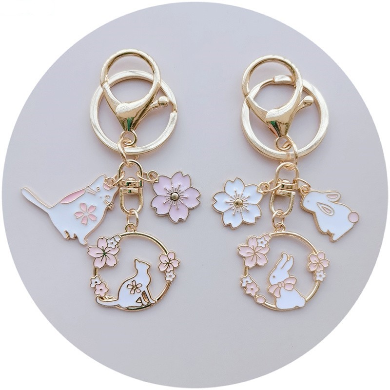 Free shipping New Cute Rabbit Cat Metal Keychain Small Cat Bow Tie Rabbit Ornament Bag Pendant