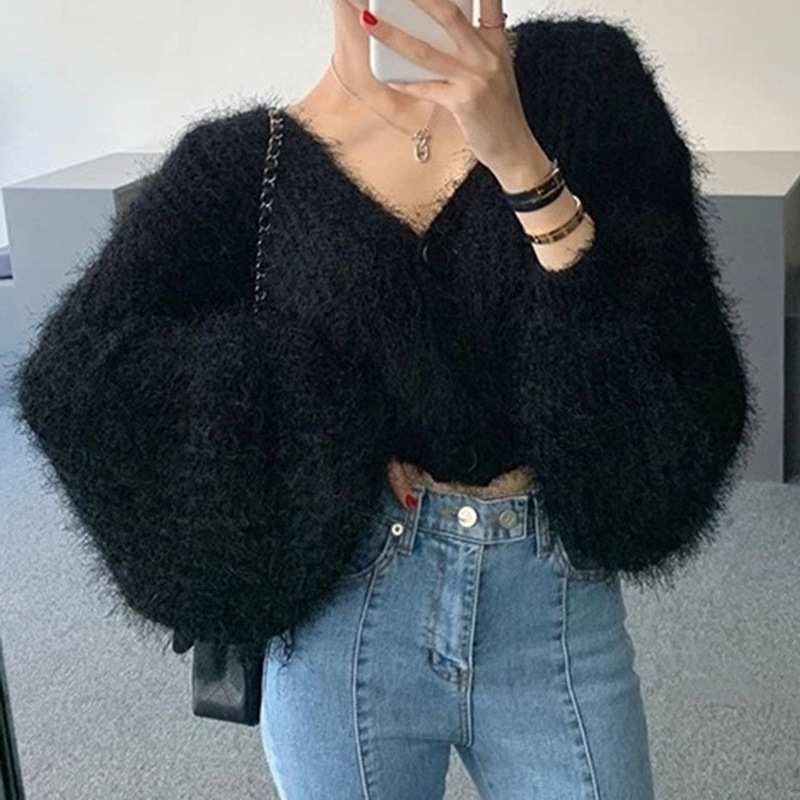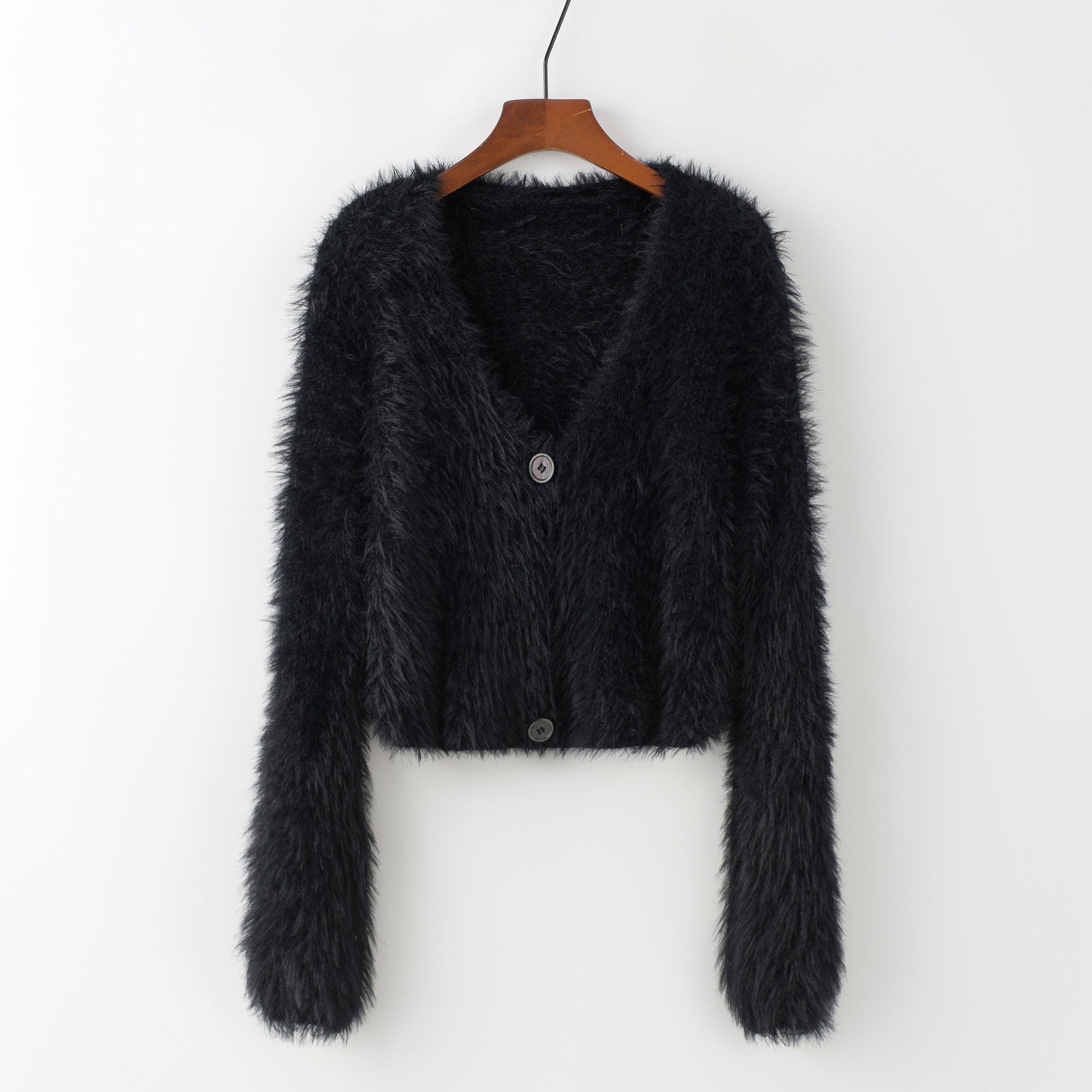 Soft Waxy Cropped Knit Cardigan Sweater Jacket