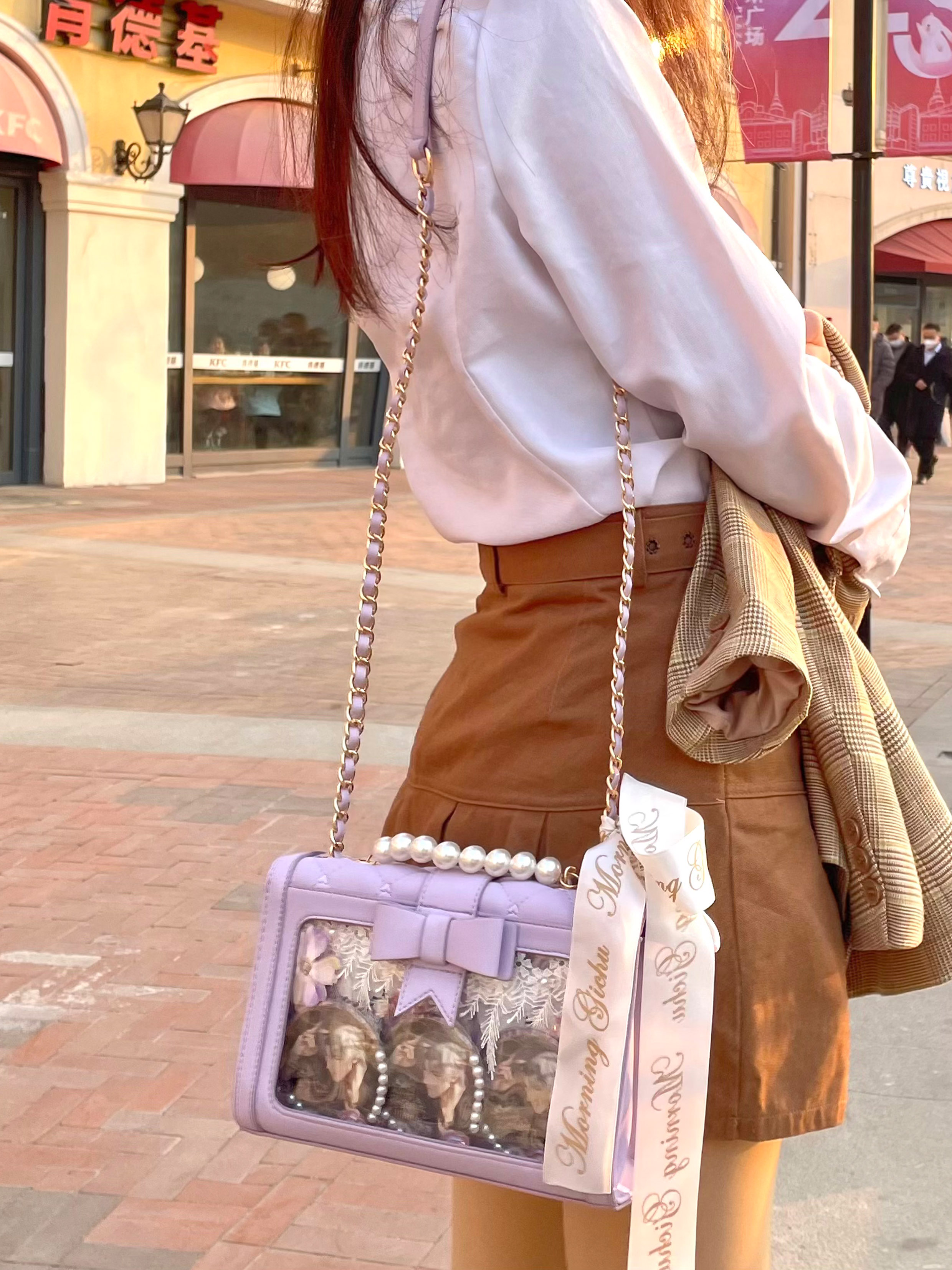 Original Lovely Love Rhombus One Shoulder Diagonal Flip Bow Knot Pain Bag