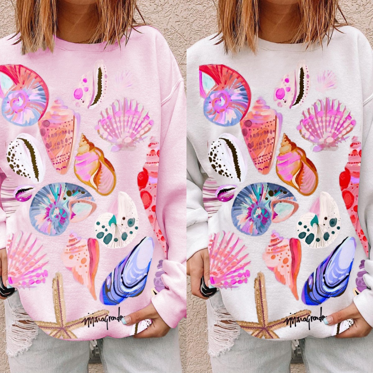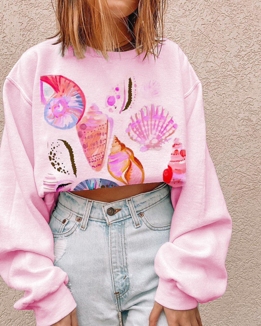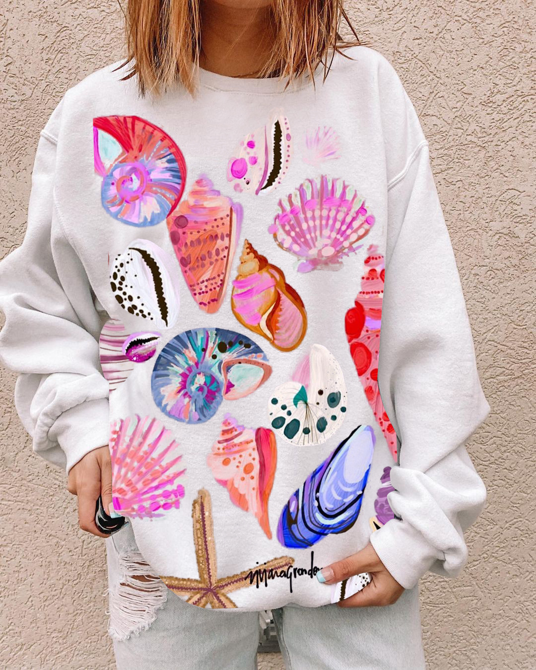 Shell-print long-sleeve dropped-shoulder terry sweatshirt