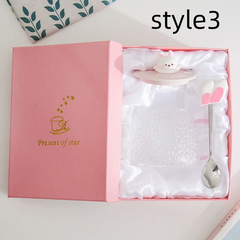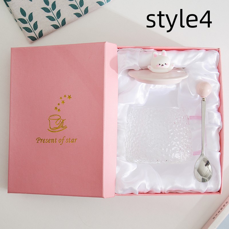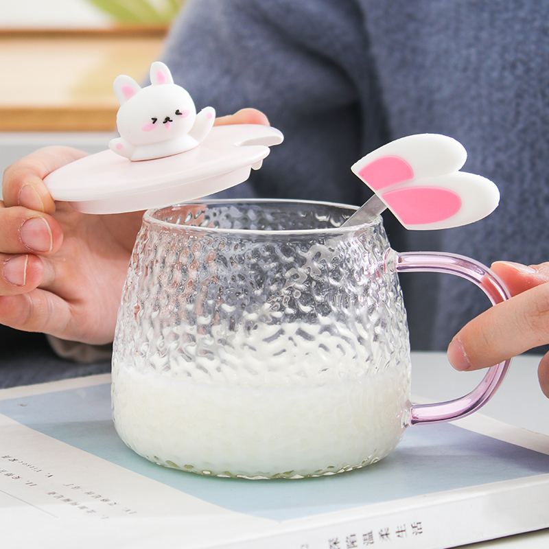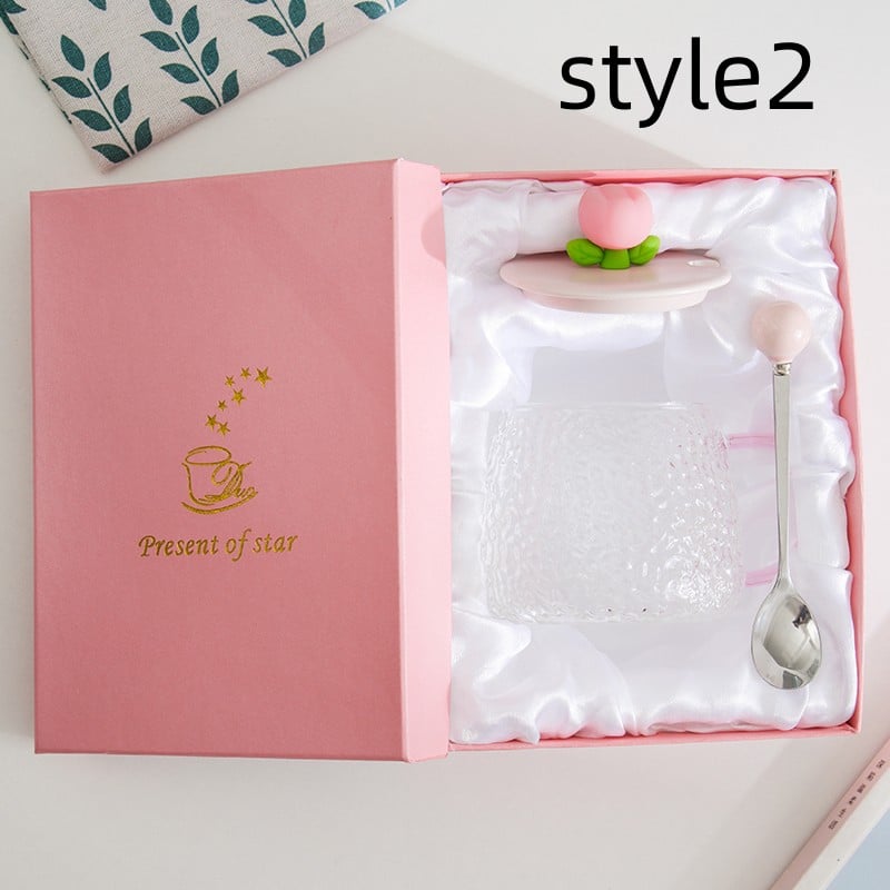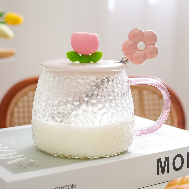 Tulip High Temperature Resistant Glass Water Cup Mug With Lid Spoon Household Coffee Cup