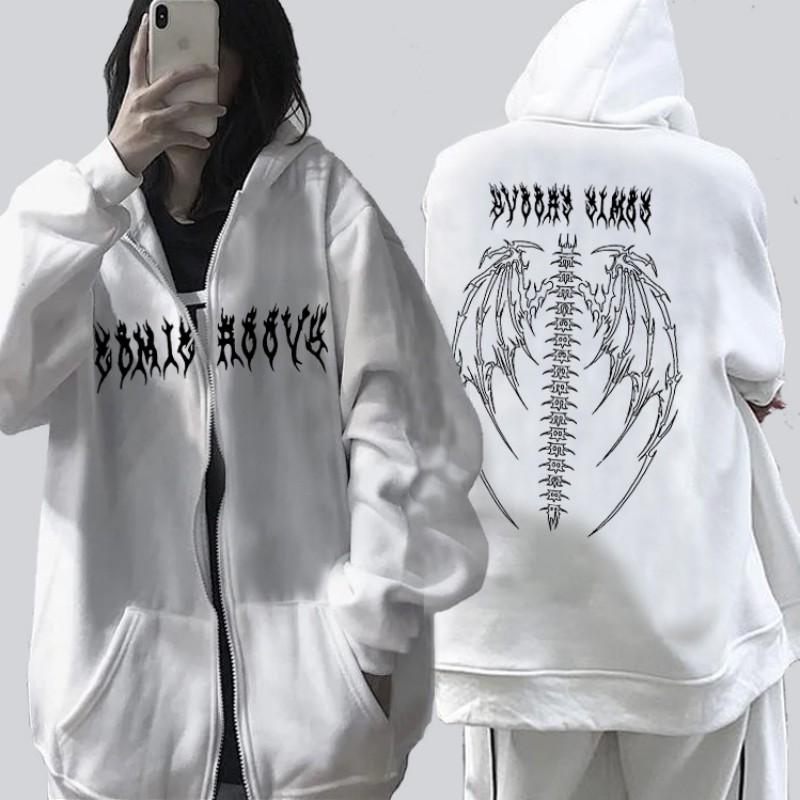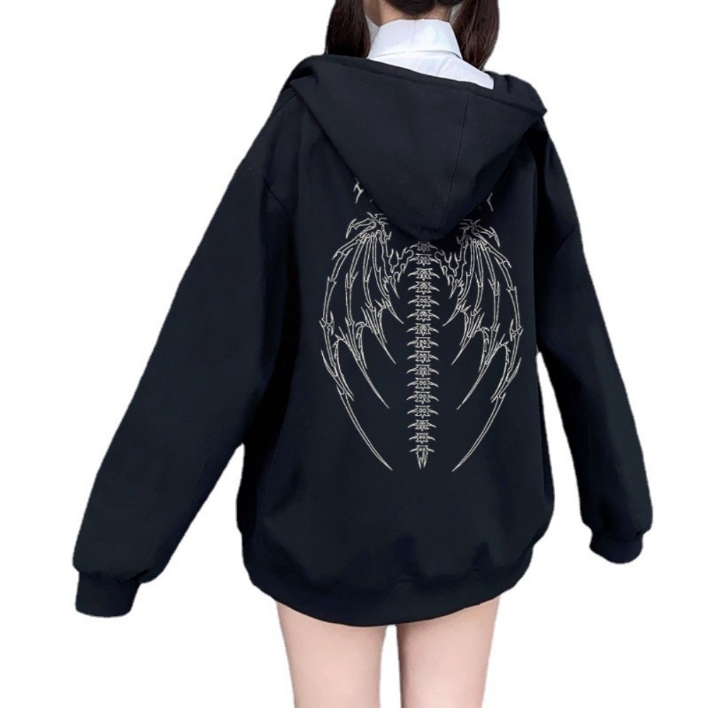 Harajuku Autumn Women Hooded Sweatshirt Zipper Butterfly Print Long Sleeve Hoodie Jacket