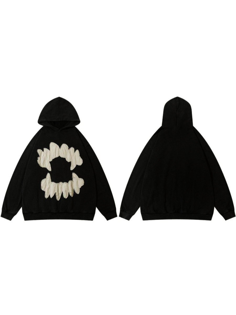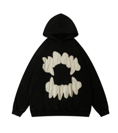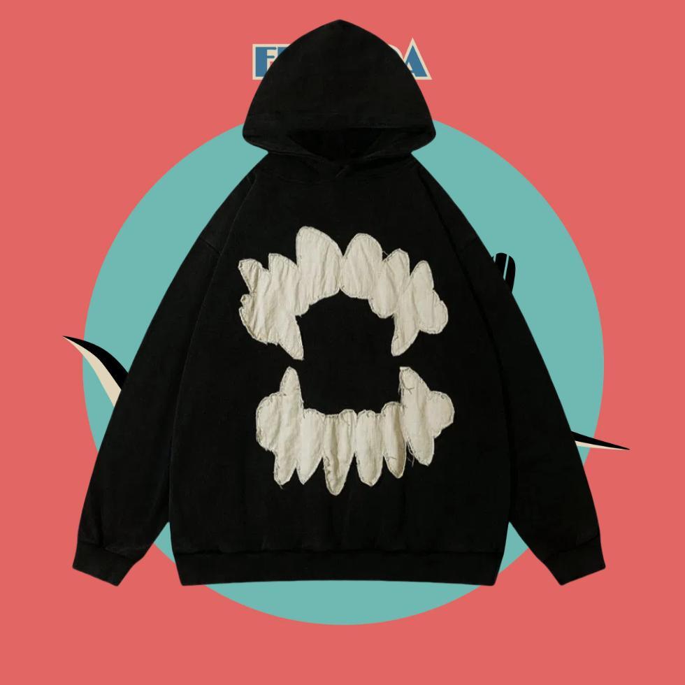 New fashion tooth hoodie, abstract exaggerated street style casual loose hooded long-sleeved sweater