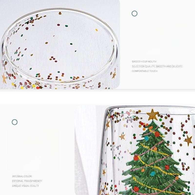 New Christmas cup double-layered heat-resistant glass cup that is not hot and flows sequined Christmas tree household water cup