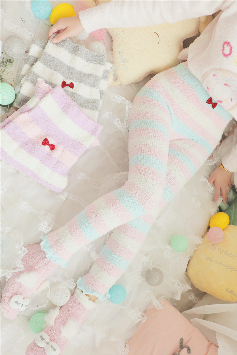 Cute rainbow striped coral velvet pajama pants leggings warm pants