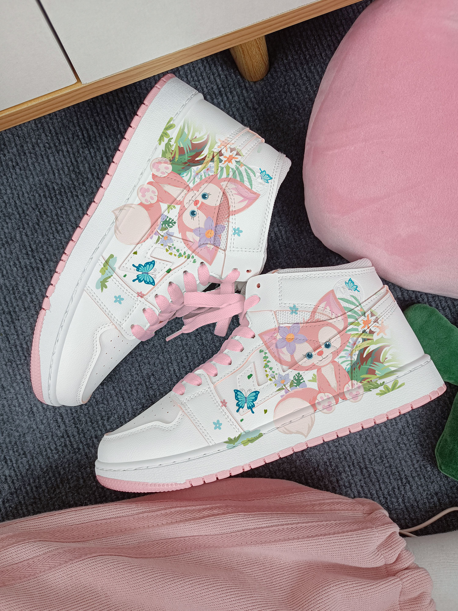 Sakura Fox Sneakers High Tops Cute Shoes hand-panted shoes
