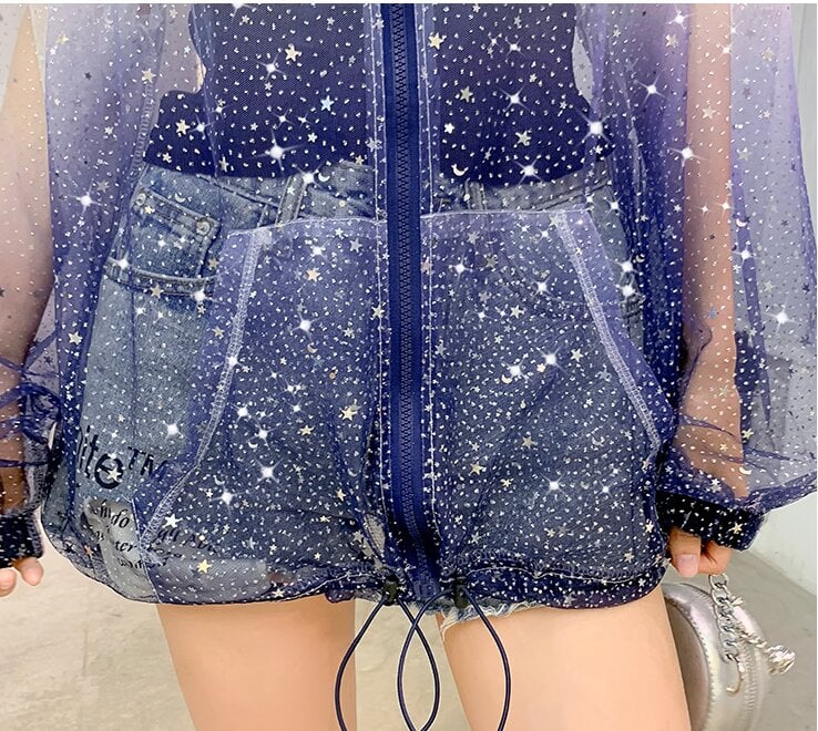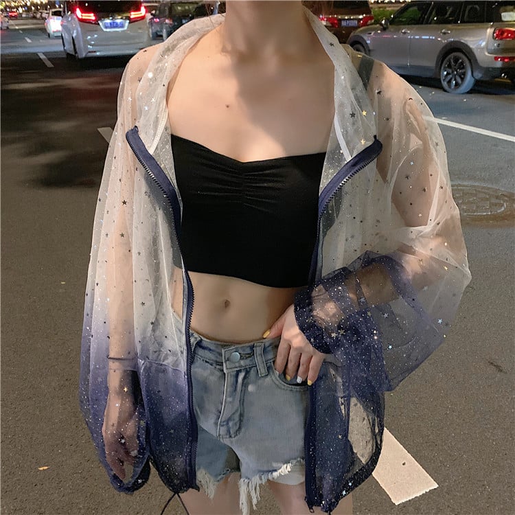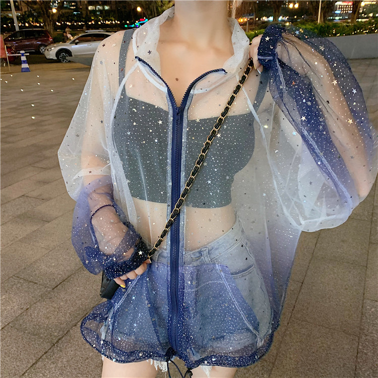 Starry sky sun protection thin shirt ice silk summer breathable short jacket