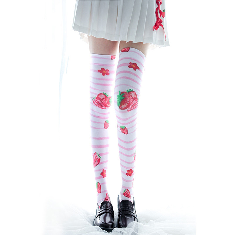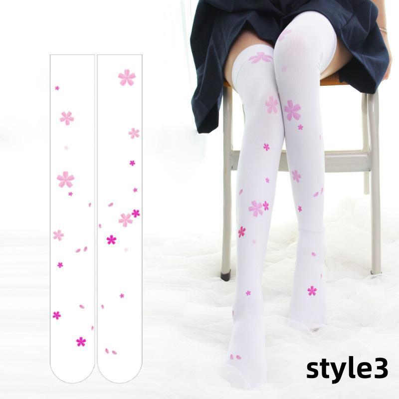 Free shipping Printed stockings thin cute anime over-the-knee long white velvet socks