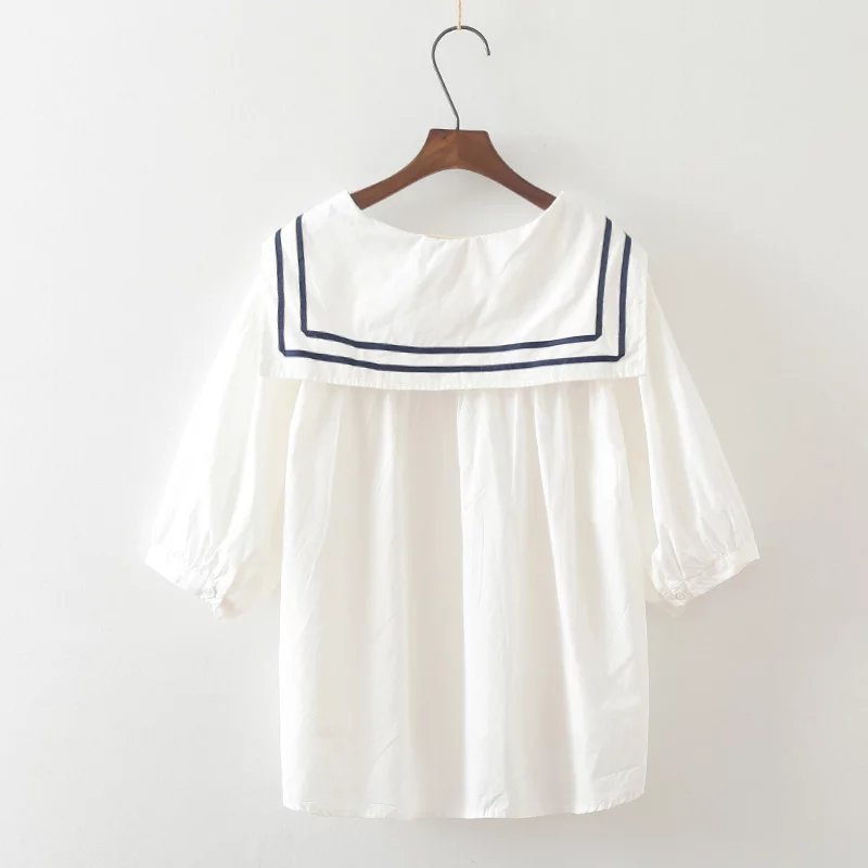 Sweet navy collar splicing loose pullover short-sleeved babydoll blouses