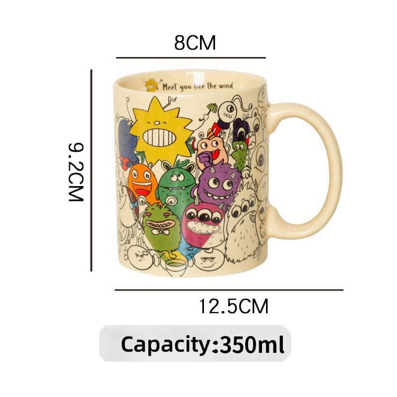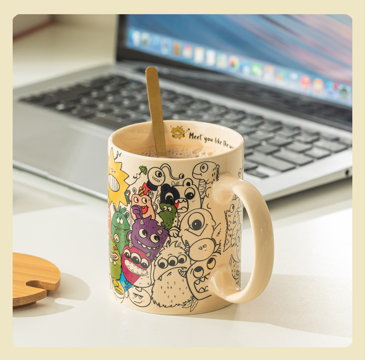 Graffiti Mug Cartoon Personality Creative Ceramic Water Cup Home Office Coffee Cup With Cover Spoon
