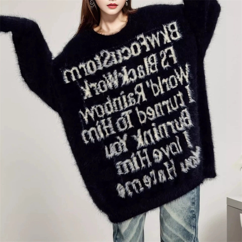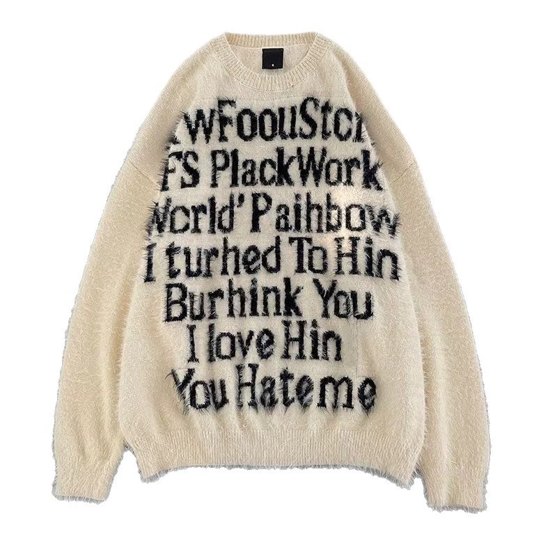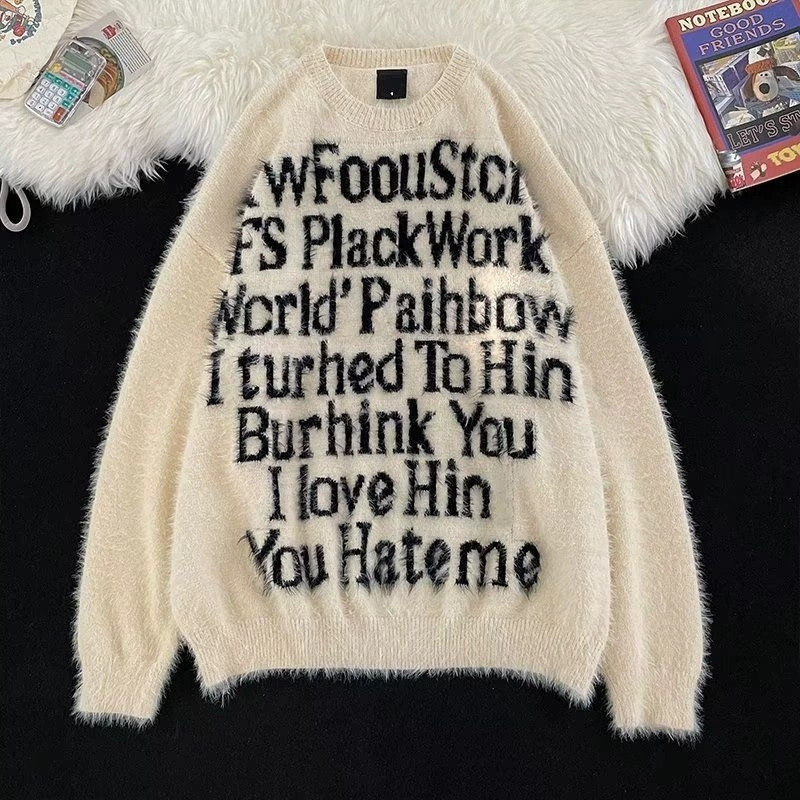 New American lettered loose pullover laid-back style knitted sweater top