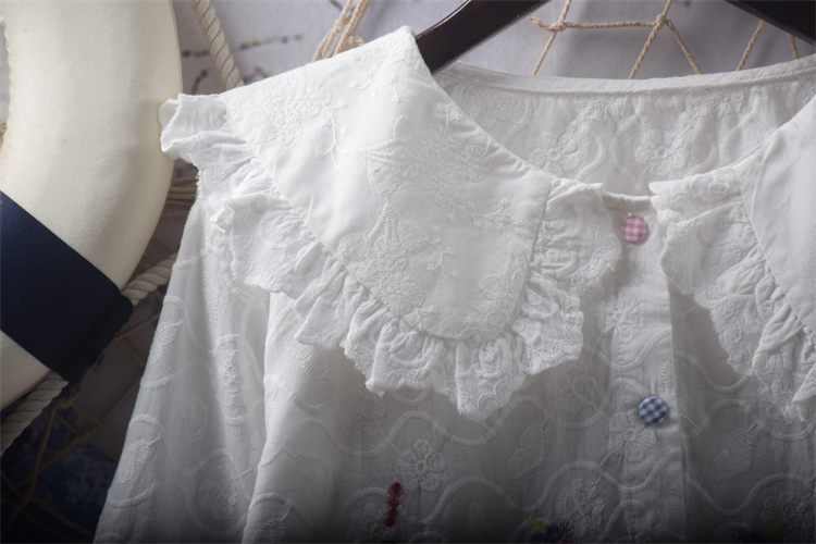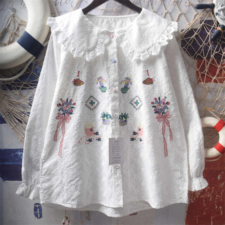 Sweet and lovely ruffled doll collar graffiti embroidery blouses