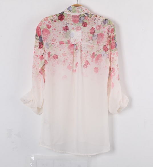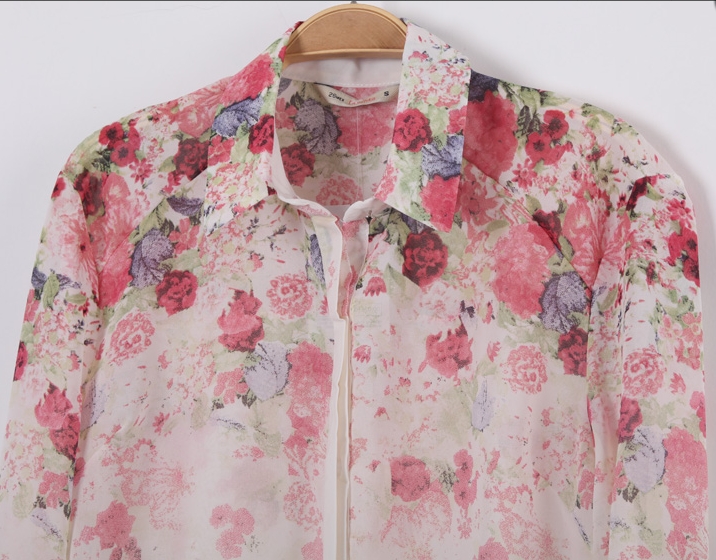 Retro printed floral motive chiffon shirt. Confortable fit . Made of imported high quality cotton blend and polyester.