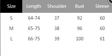 Size S - M - L (divide by 2.54 for sizes in inches)