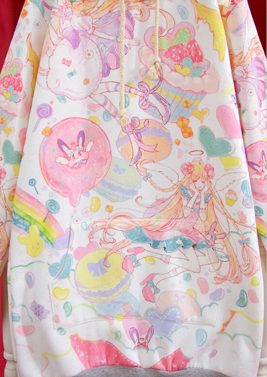 color: white Pattern: cartoon animation Fabric Material: Cotton Size: Free Length: 75CM Bust: 106CM Shoulder: 44CM Sleeve: 60CM
