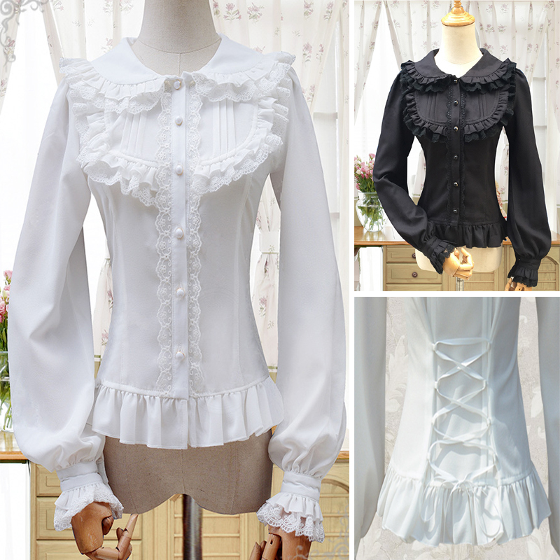 Lovely doll collar flouncing bow lantern sleeve blouses